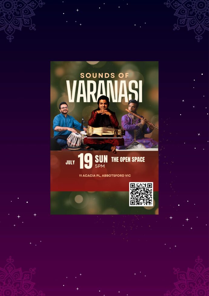 events WORLD CLASS MUSIC IN THE HILLSΒ May 22, 2026 – 7pm Tecoma Church Learn More ELSEWHERE IN INDIA, 28 MARCH @ BUNJIL PLACE, VIC March 28, 2026 – 4:45pm Bunjil Place Learn More Kirtan Chanting with Live music September 5, 2025 – 7:PM ANANDA YOGA, Belgrave Learn More INDIAN COMMUNITY DAY AT nGV August 30, 2025 – 11:45AM NGV Learn More